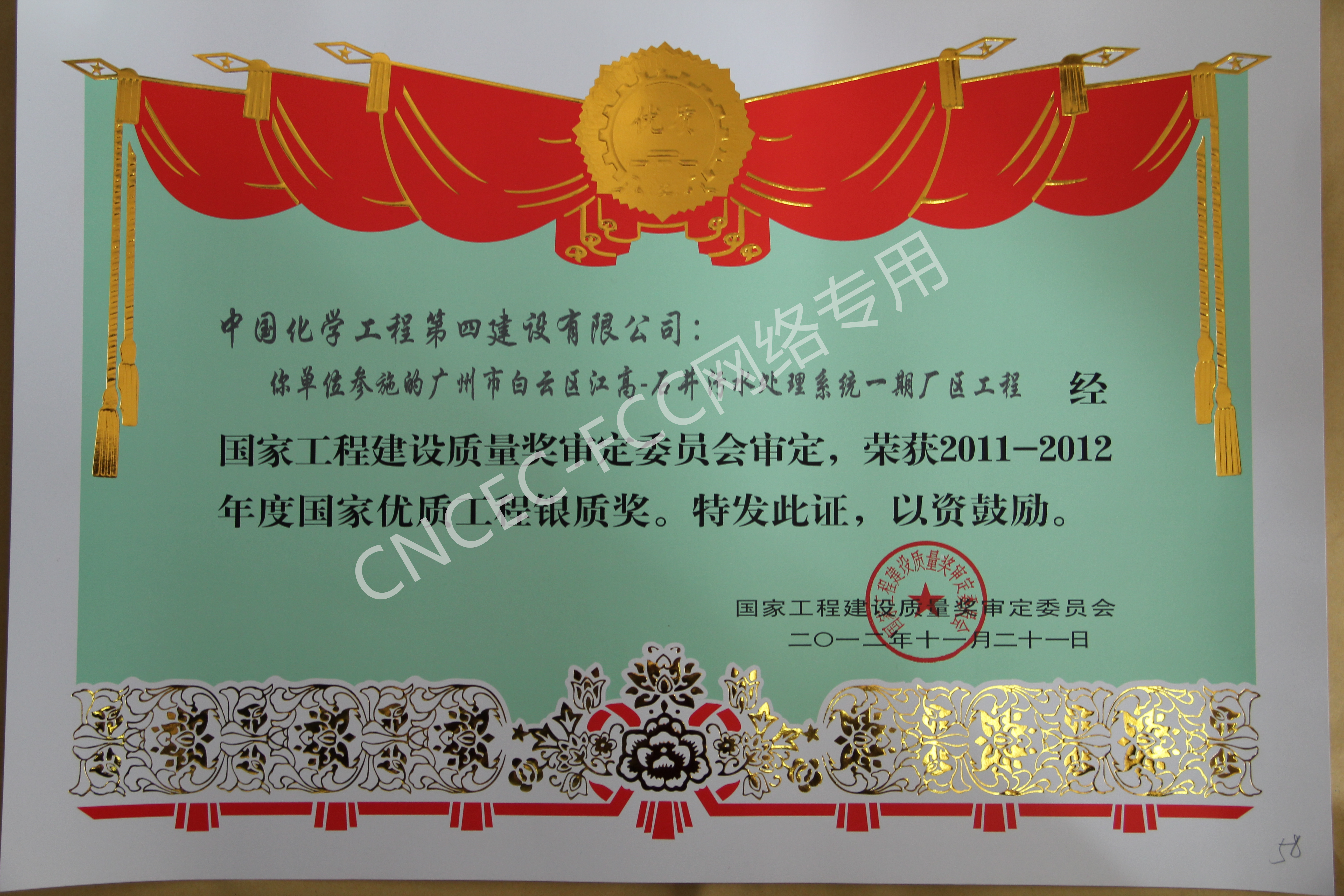 廣州市白云區江高-石井污水處理系統一期廠區工程國家優質工程銀質獎