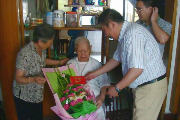 為了紀(jì)念抗日戰(zhàn)爭(zhēng)勝利65周年,8月17日,公司黨委副書記邢金湘、副經(jīng)理何玉文帶領(lǐng)公司離退辦負(fù)責(zé)人看望了公司參加抗日戰(zhàn)爭(zhēng)的吳深源、孫長(zhǎng)寅、白文清、石伯秋4名老戰(zhàn)士,代表公司為他們送去了慰問金。