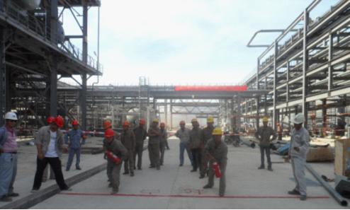 活動中,項目部通過張貼消防畫冊、懸掛橫幅、制作安全宣傳欄和組織員工觀看警示教育片等,開展了形式多樣的安全文化活動。為避免高溫中暑現象,采取了宣傳防暑降溫知識、對食堂伙食進行調節、避開高溫時段作業、定期為一線員工送涼茶和綠豆湯等切實有效的防護措施。在此基礎上,6月18日在生活區開展了緊急撤離聯合演練,6月21日組織了施工隊消防接力賽和開展火災撲救演練,提高員工風險防范意識和自救互救等災害應對能力。同時,對施工現場開展專項檢查,對發現的安全隱患責令立即整改。