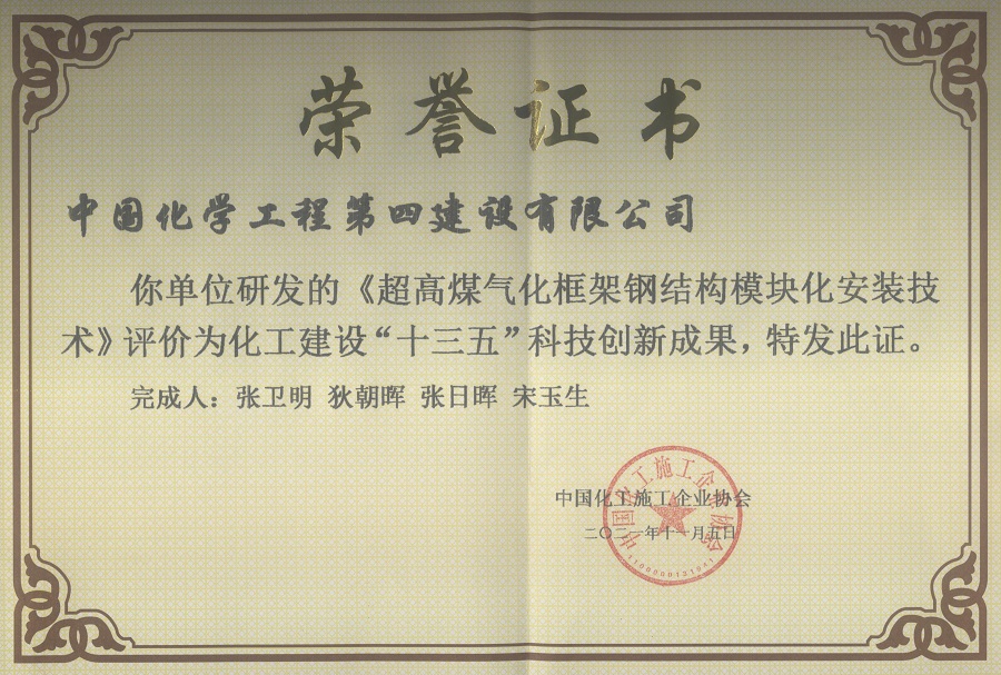 公司榮獲兩項化工建設“十三五”科技創(chuàng)新成果獎