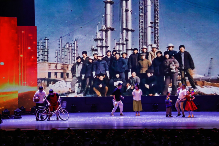 港晨公司傾情演繹的舞臺劇《追光·建未來》再現(xiàn)了四化建人在70年征程中,為國家建設(shè)夜以繼日奮斗的動人場景,演繹了化建人鳳凰涅槃、浴火重生的宏圖壯志,歌頌了建設(shè)者們向著美好生活踔厲奮發(fā)的豪邁氣概。