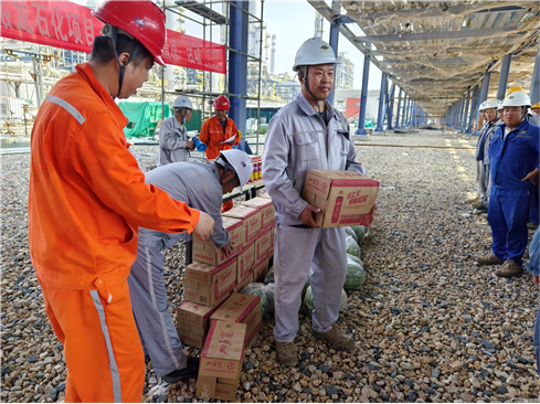 近日,湛江一體化項目部開展“情系一線送清涼、安全生產(chǎn)保安康”慰問活動,為一線勞動者送上了酸梅湯、藿香正氣水等防暑降溫物品,向他們的辛勤付出表示感謝,并叮囑大家要勞逸結合,在作業(yè)過程中采取有效的防暑降溫措施,確保暑期各項作業(yè)安全有序高質量進行。