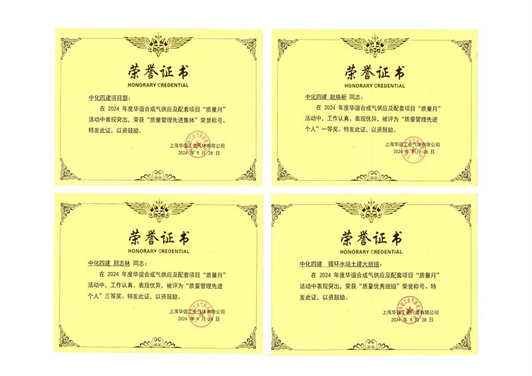 近日,上海華誼工業氣體有限公司召開合成氣供應及配套項目“質量月”活動總結大會,華東公司華誼項目部獲評質量先進集體,項目部職工趙煥新、朋志林分別獲評質量管理先進個人一等獎和三等獎,項目部循環水土建大班組獲“質量優秀班組獎”。