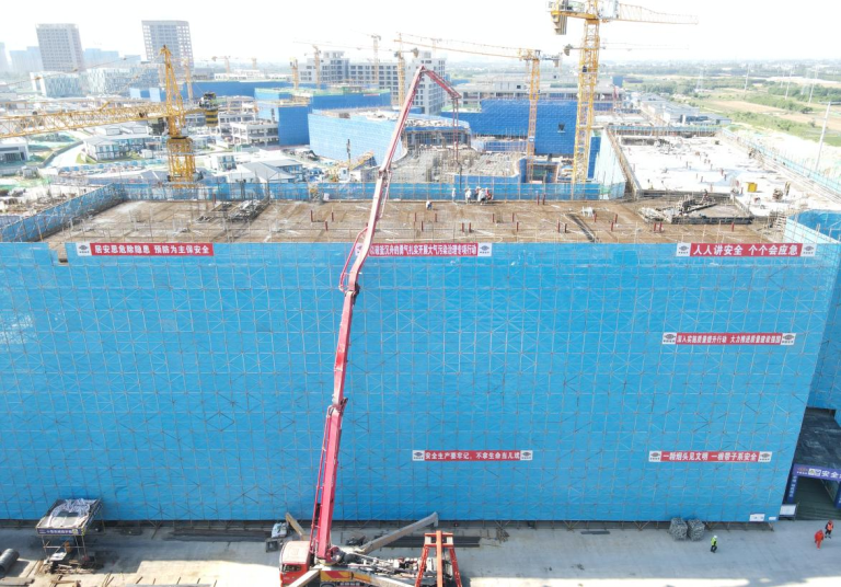 近日,伴隨著混凝土嗡嗡的澆搗聲,由港晨公司承建的岳陽自貿(mào)片區(qū)數(shù)字經(jīng)濟(jì)產(chǎn)業(yè)綜合體項(xiàng)目C1棟主體結(jié)構(gòu)封頂。