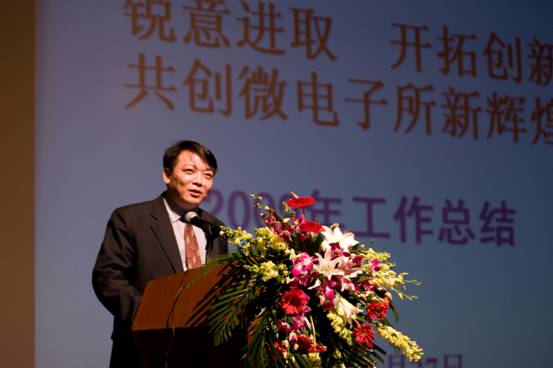 葉甜春所長首先代表所領導班子向全所職工作了《銳意進取,開拓創新,共創微電子所新輝煌》的工作報告,報告從主要工作成績、研究所總體形勢判斷、下階段工作思路三大方面總結和回顧了2009年全所的整體工作情況。他指出,微電子所在09年完成了黨政領導班子換屆、科研布局及機構調整、國家重大專項落實、院地合作領域拓展、優秀人才不斷引進等多項工作,徹底完成了由“骨干”向“核心”、“引領”地位的轉變,現在的中科院微電子所已成為目前國內微電子技術學科方向布局最完整的微電子領域綜合研究與開發機構。他希望微電子所全體同仁要抓住歷史機遇,繼續努力,以一往無前的奮斗精神書寫研究所歷史新的篇章。