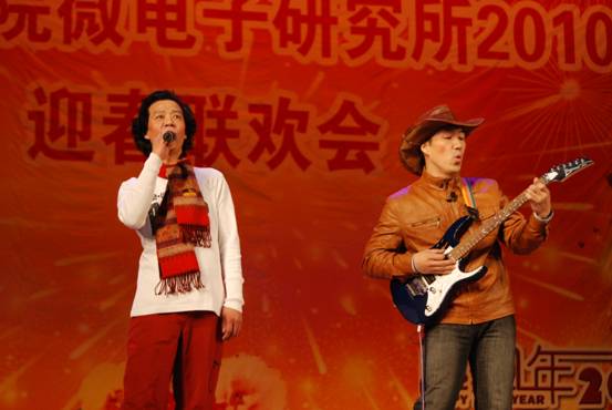 文藝演出中,公司合唱團的一首《國家》為整臺精彩的演出拉開了序幕。七室的民俗風味舞蹈《過河》掀起了紅紅火火、熱熱鬧鬧的過節氣氛。三室的手語表演《感恩的心》,讓人感悟到要帶著一顆感恩的心去面對美好的生活和燦爛的明天。二室自編、自演的音樂小品劇《美麗“芯”世界》不僅形式新穎,同時還加入了與研究所息息相關的諸多元素,讓場下觀眾不時爆出笑聲。離退休職工的舞蹈《大姑娘美》展現了老同志們的活力和風采,動力、一室、八室和五室的歌曲串燒更是讓人意猶未盡。服裝表演《繽紛四室》不僅展現了四室職工在工作之余的靚麗一面,更以獨特的舞臺效果博得了觀眾們的連連掌聲。團委、研究生會的配樂詩朗誦《盛世中國》,以莘莘學子們的深情演繹,讓人為祖國的崛起而感到自豪,六室的小合唱《禮》用優美的旋律和充滿古意的歌詞道出了中國儒雅的民族品格和高尚精神。機關職工的多民族舞蹈《我們的祖國是花園》以色彩鮮艷的服飾、優美的舞姿引出了全所職工的陣陣喝彩。一室“四位才子”的歌曲雜唱《畫板圖》不僅詮釋了與工作相關的節目主題同時還幽默“雜唱”了當下的流行歌曲。九室的集體舞《天天向上》以交誼舞和風靡全球的舞蹈NOBODY展現了職工和學生們的激揚活力。十室“海歸合唱團”的歌曲《真心英雄》不僅演繹了拳拳赤子之心,更唱出了他們立志扎根研究所為祖國科技事業作貢獻的滿腔熱情。來自杭州中科微的學子莊海孝,以陳式太極、劈掛、少林拳等傳統武術展示了博大精深的中國功夫,離退休職工氣勢蓬勃的大合唱《和諧社會》、《祝福祖國》更是將整臺聯歡會推向了高潮。
