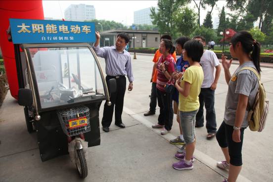 學生們聽取太陽能技術知識介紹