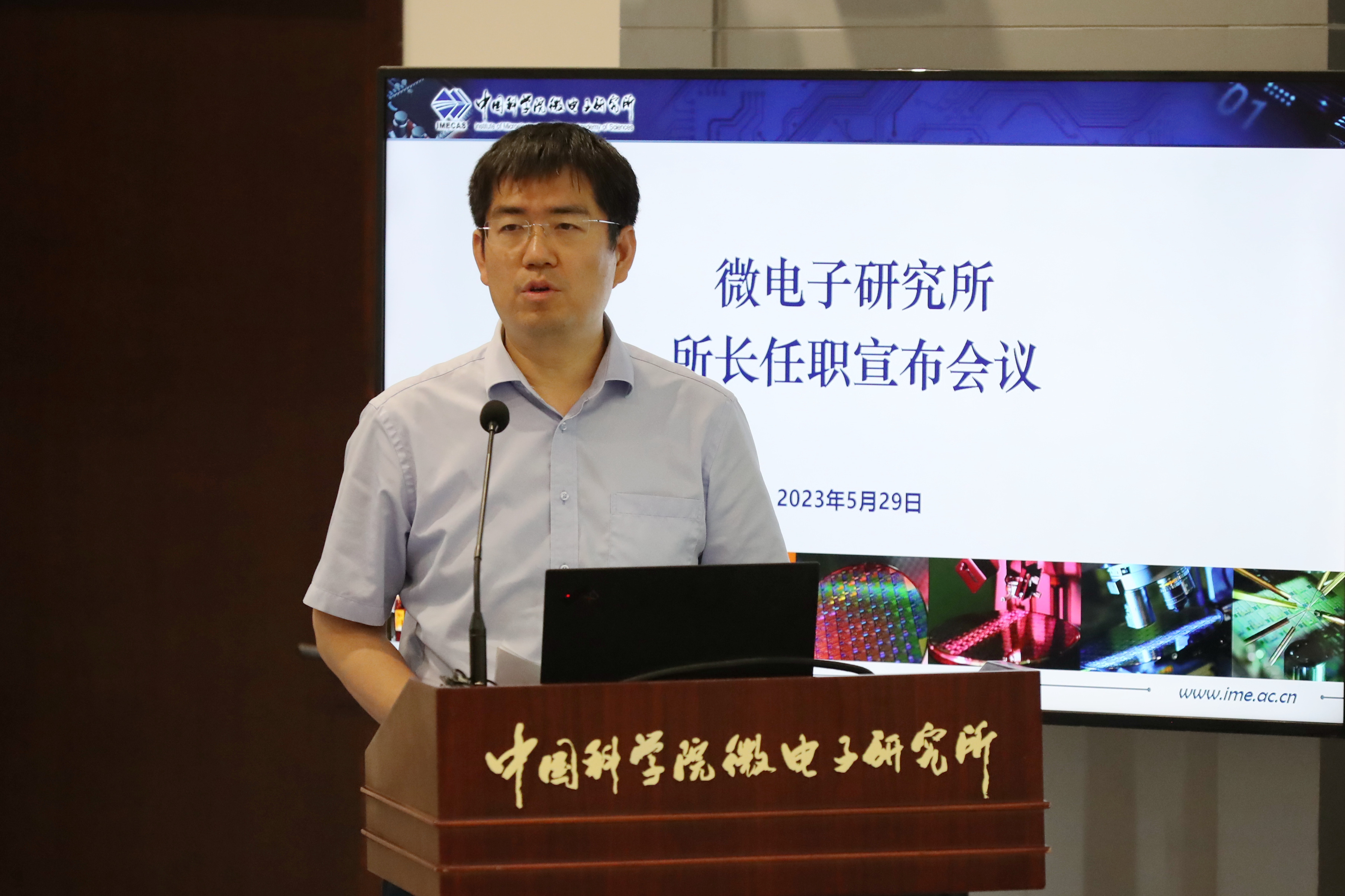 蔡宏志宣讀了中科院黨組關于任命戴博偉同志為微電子研究所所長的通知。