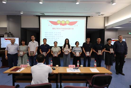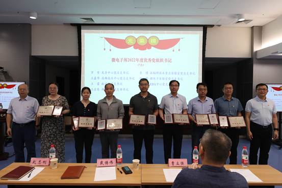 會議表彰了微電子所2022年度先進黨組織、黨建創新獎、優秀黨組織書記和優秀黨群干部,頒發了“光榮在黨五十年”紀念章,戴博偉書記、曹立強副所長為獲獎集體、個人頒獎。